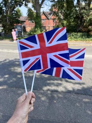Flags at the ready for our Year 5 and 6 children and some of the staffing team...