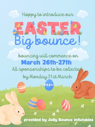 On Wednesday 26th and Thursday 27th of March we will be jumping into spring and holding a sponsored bounce where children will be timed to see how many bounces they can do in 1 minute on our bouncy castles which have been kindly provided by Jolly Bounce Inflatables!