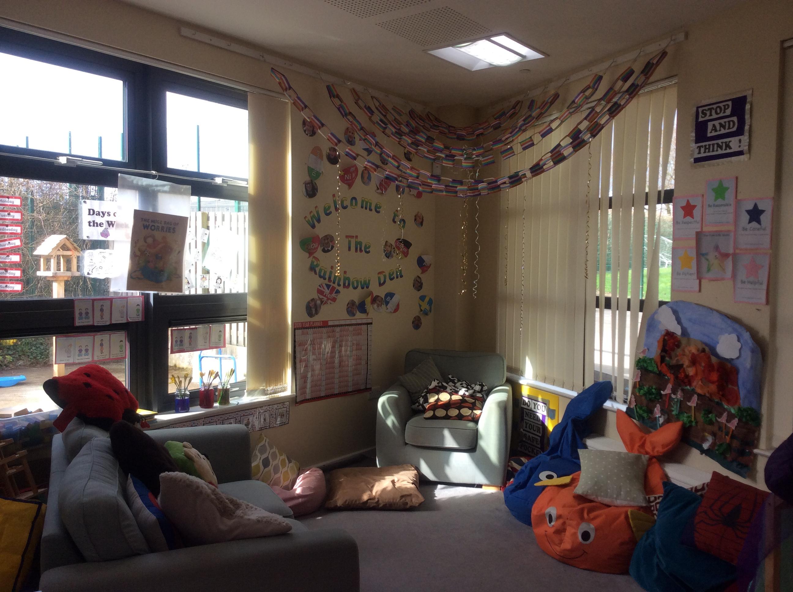 Our Rainbow Den room provides a safe, home-like environment where children can access small group interventions and learning away from the classroom.