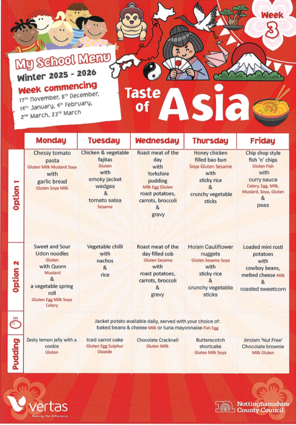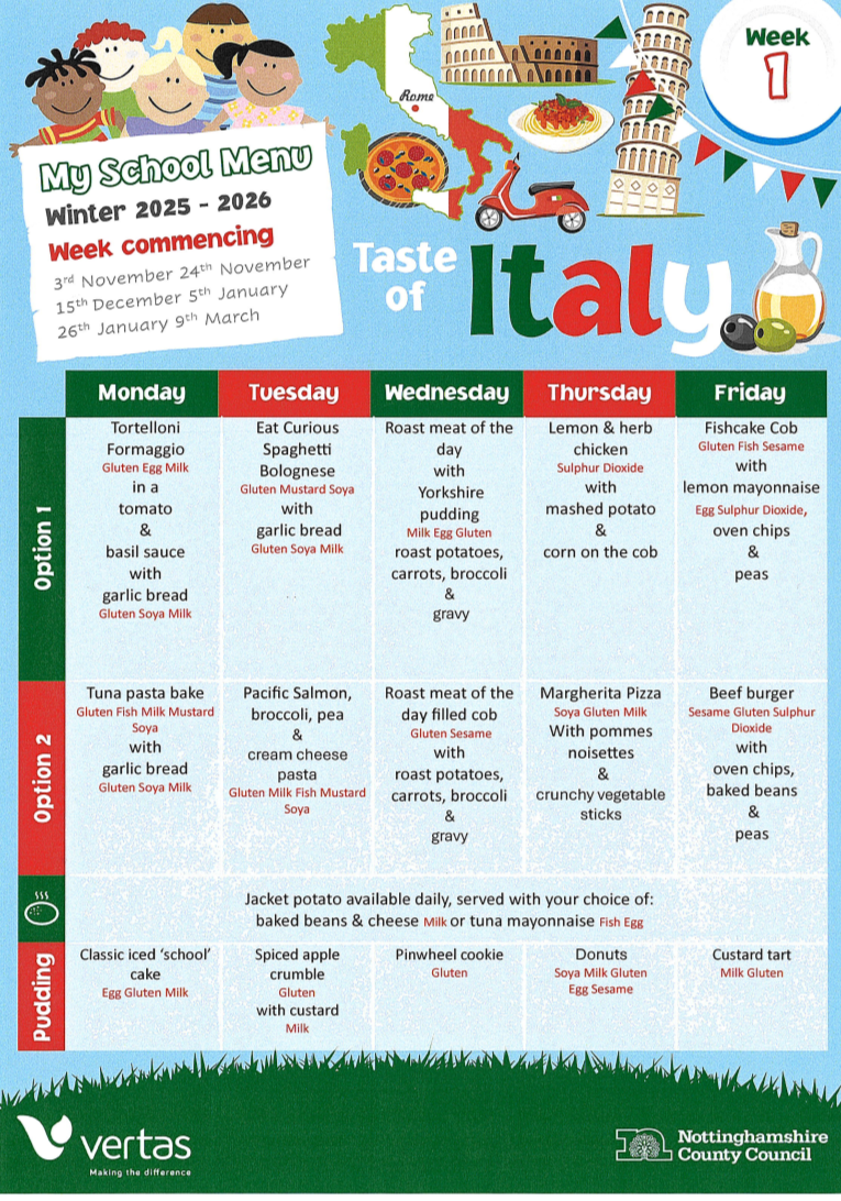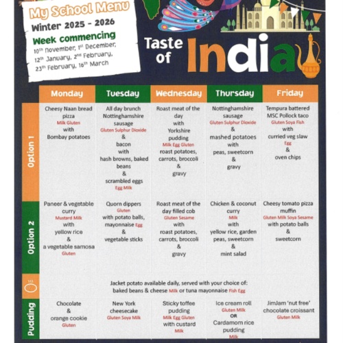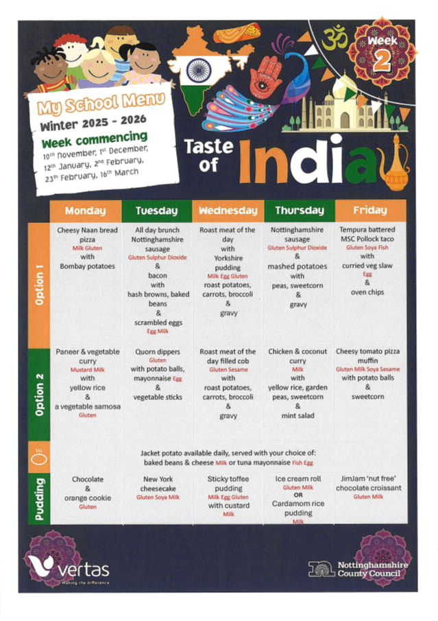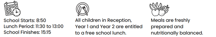 School Meals are provided at a cost of £3.16 per day (or free for those who qualify) and should be paid for in advance via Parentmail. The class teacher completes a "Dinner Register" every morning so your child just needs to know if they are having a school meal on any given day and say so during the register.